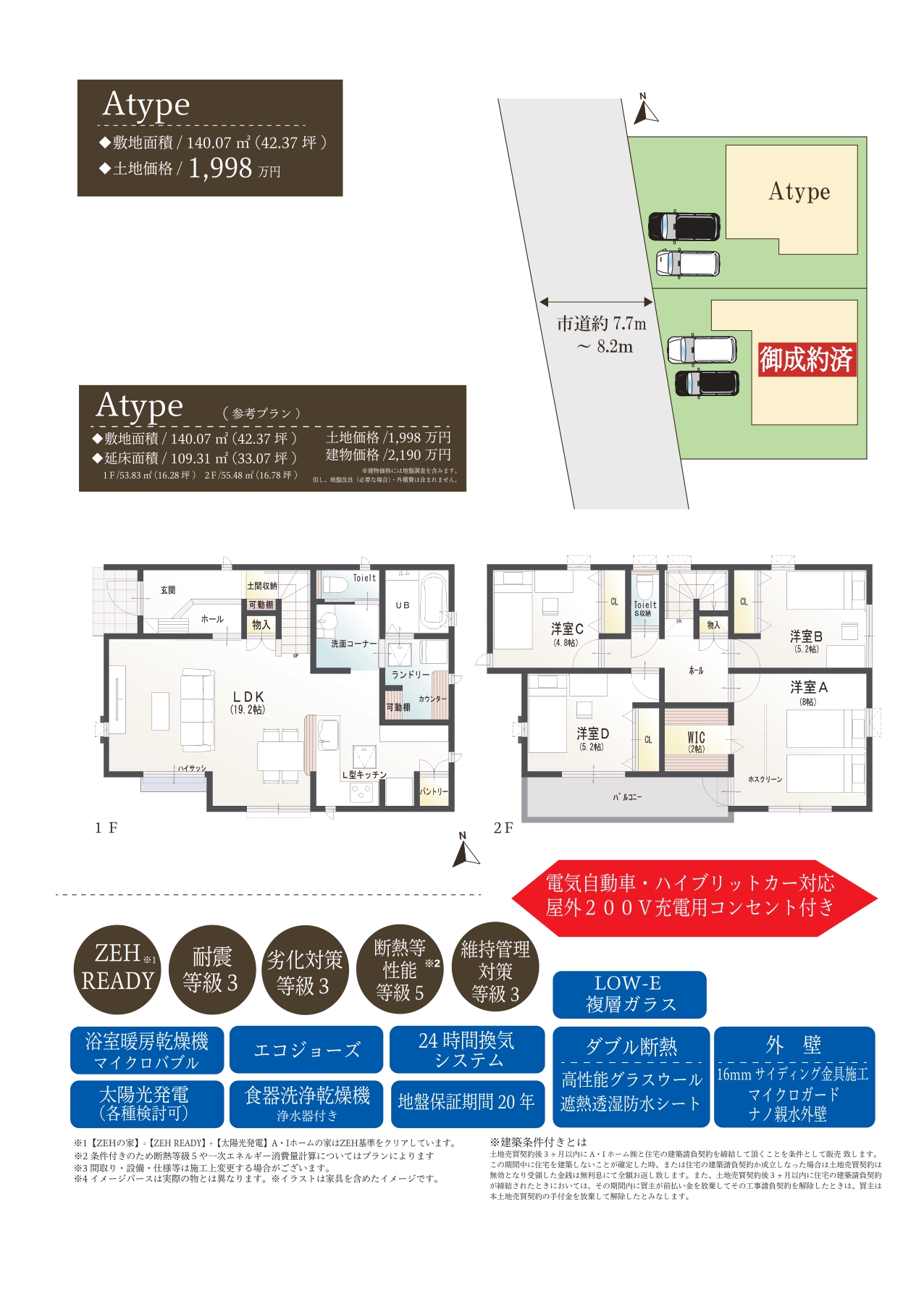 | 土地価格 | 【Atype】1,998万円 |
